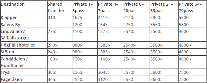 På gemensam transfer reser barn under 11år för 50% rabatt av ordinariepris.